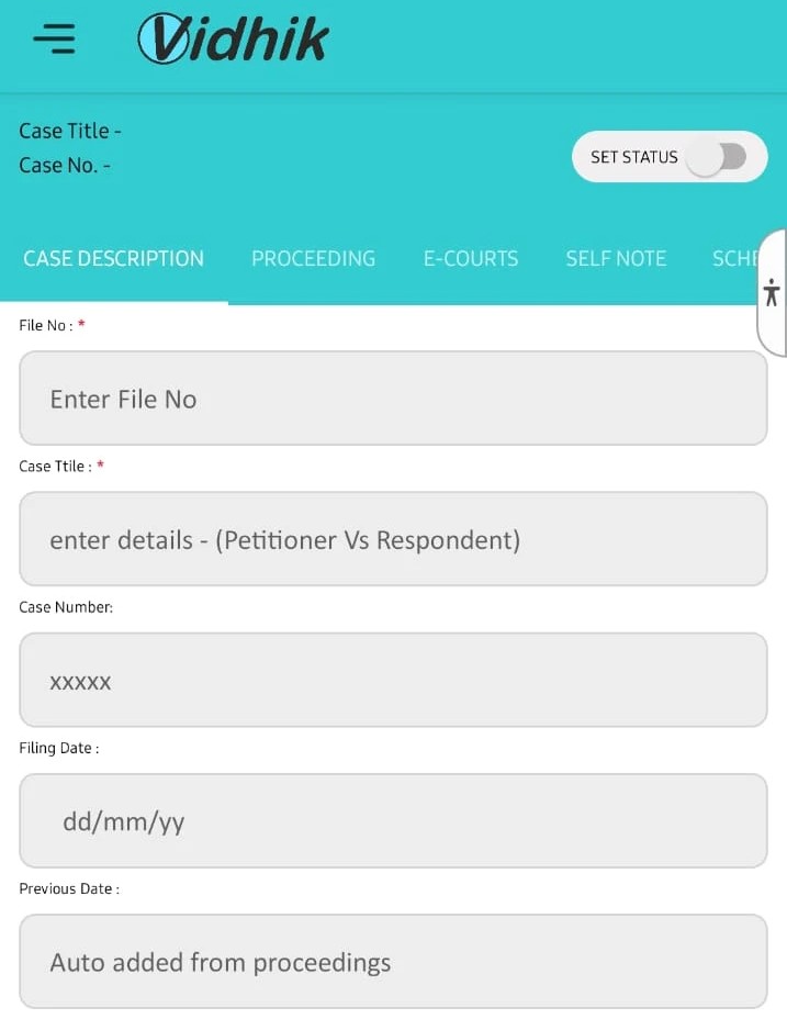 Court Management: "Automatic case status update," "Daily causelist app," "Next hearing reminder," "Court date tracker." Client Management: "Client case history," "Lawyer client communication app," "Legal billing software," "Invoice generator for advocates." Document Management: "Legal document storage," "Case brief organizer," "Vakalatnama manager," "Evidence tracker." Utility: "Bare Acts India app," "Legal drafting templates," "Citation finder." "Best Android app for junior advocates in India" "How to track court dates automatically on mobile" "Free case management software for individual lawyers" "Alternative to physical case diary for advocates" "App to manage case fees and client dues"