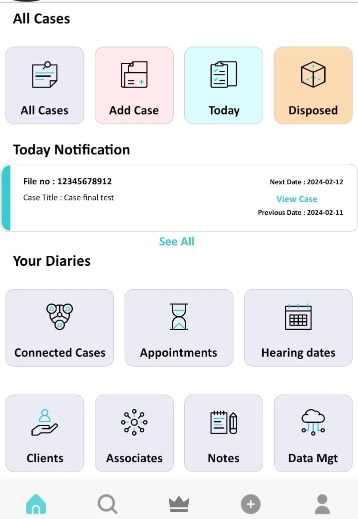A unique digital solution for tracking, automation and management of legal cases for attorneys and litigants. Sharing cases keep advocates, associates and clients on one page. Know upcoming cases instantly anywhere from cloud-based storage. Track cases on fingertips anytime and anywhere, be it court room, lawyer’s office, corporate meeting, professional gathering or anywhere under the sky. Manage and grow practice in efficiency, volume, and jurisdiction. The basic plan provides you opportunity to get acquainted with all great features free of cost. You can upgrade plans as you grow your practice. The application is simple and easy to use. This unique model keeps advocates and clients connected and develop a strong bonding.
